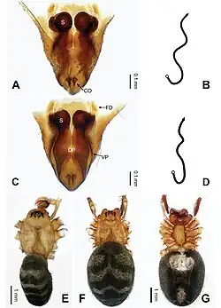 Habita en China.[1] El holotipo masculino mide 5,26 mm y el paratipo femenino 6,85 mm.[2]