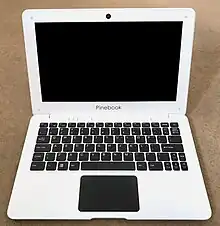 Pinebook es un notebook de bajo costo diseñado y fabricado por la compañía americana Pine Microsystems. Se anunció en noviembre de 2016 y la producción comenzó en abril de 2017. Está basado en la plataforma del ordenador de a bordo Pine A64 existente de Pine64 y cuesta 89 o 99 USD para el modelo de 11,6" y 14" respectivamente.[1] Su apariencia se parece a la de MacBook Air.[2]