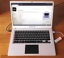 A diferencia de los portátiles tradicionales, usa una CPU ARM en lugar de una x86. Utiliza la Tecnología Allwinner A64 SoC, que contiene cuatro núcleos ARM 1.2 GHz Cortex-A53 y Mali. 400 MP2 GPU, junto con 2 GB RAM LPDDR3. En lugar de una unidad de disco duro, utiliza 16 GB de eMMC. Memoria flash de 5.0, ampliable a 64 GB. La capacidad de almacenamiento puede ampliarse aún más utilizando la ranura para tarjetas microSD (hasta 256 GB).[3]