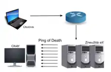 Es un tipo de ataque a computadoras que implica enviar un ping deformado a una computadora. Un ping normalmente tiene un tamaño de 64 bytes; algunos sistemas operativos no podían manejar pings mayores al máximo de un paquete IP común, que es de 65 535 bytes.[5] Enviando pings de este tamaño era posible hacer que esas computadoras dejaran de funcionar.