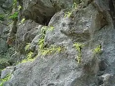 Rocas calizas, en paredes verticales o extraplomadas y húmedas.
