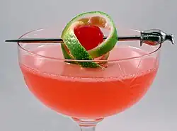 | Preparación | Agítense bien los ingredientes con hielo y cuele en un vaso de cóctel. Decorar con una cereza marrasquina. | |