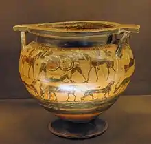- Amyx, Darrell A. (1988). Corinthian Vase-Painting of the Archaic Period (en inglés). Berkeley: University of California Press. pp. 262-263, 328-329. ISBN 0-520-03166-0.