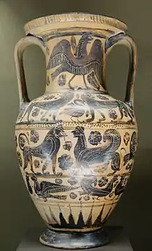- Boardman, John (1977). Schwarzfigurige Vasen aus Athen. Ein Handbuch. [Kulturgeschichte der Antiken Welt (en alemán) 1. Maguncia: Philipp von Zabern. p. 22. ISBN 3-8053-0233-9..