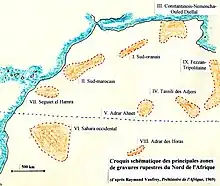 - Esta obra contiene una traducción derivada de «Peintures rupestres de la Tadrart Rouge» de Wikipedia en francés, publicada por sus editores bajo la Licencia de documentación libre de GNU y la Licencia Creative Commons Atribución-CompartirIgual 4.0 Internacional.