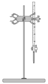 - Un instrumento que se conecta a un soporte o rejilla mediante una doble nuez. Este acoplamiento proporciona la posibilidad de ajuste en el soporte, tanto vertical como horizontalmente. También puede hacerse girar un cierto ángulo para facilitar el montaje del aparato.