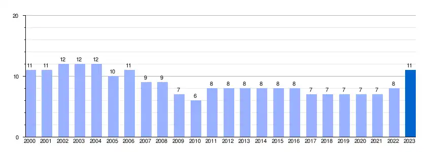 | Gráfica de evolución demográfica de Piornedo[2] entre 2000 y 2023 |