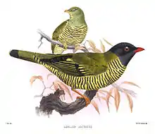 - Pipreola arcuata viridicauda Meyer de Schauensee, 1953 – Andes desde el centro de Perú (al sur desde Junín) hacia el sur hasta Bolivia (La Paz, Cochabamba).