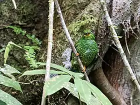 ![]() Ejemplar hembra de frutero gorgirrojo (Pipreola chlorolepidota) en San Martín, Perú. | ||