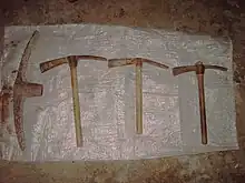 Antiguamente, se usaban las piquetas en la fundición de cañones para cortar el borde de los moldes y para formar la canal que se abre en la fosa para dirigir el metal desde el horno a los moldes.