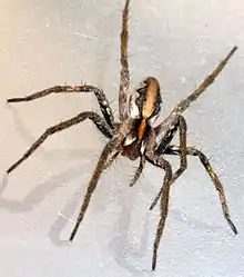 | Pisaura mirabilis. Donde habitan: Habitan las Islas Canarias y Madeira, la parte asiática de Rusia, China y el norte de África. Las características llamativas del Pisaura mirabilis son sus largas piernas (la cuarta es la más larga) y su delgado abdomen (opistosoma). | ||