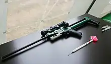 Una pistola de dardos es un rifle de aire comprimido que dispara un dardo.[1] En la punta del dardo se coloca una aguja hipodérmica, la cual se llena con un tranquilizante,[2] una vacuna,[3] o un antibiótico.[4] Una pistola de dardos que contiene un tranquilizante se llama pistola tranquilizante.