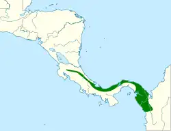 Se distribuye desde la costa caribeña de Costa Rica, por Panamá, hasta el noroeste de Chocó (Colombia).[4]