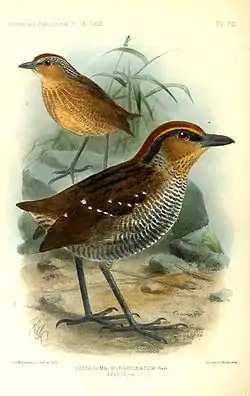 ![]() Pittasoma rufopileatum, ilustración de Keulemans, 1902 | ||