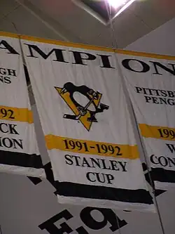 El club fue fundado en 1967 como una de las seis primeras franquicias de expansión de la NHL después de la era Original Six, y no ganó un título hasta la temporada 1990/91, cuando una plantilla liderada por el jugador Mario Lemieux y otros como Jaromir Jagr o Paul Coffey llevó a Pittsburgh a su primera Stanley Cup de la historia. Penguins renovó su campeonato nacional en 1991/92, y durante la década de 1990 se convirtió en una de las potencias del hockey sobre hielo en Estados Unidos.[1]