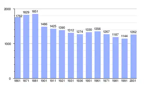 | Gráfica de evolución demográfica de Piverone entre 1861 y 2001 |