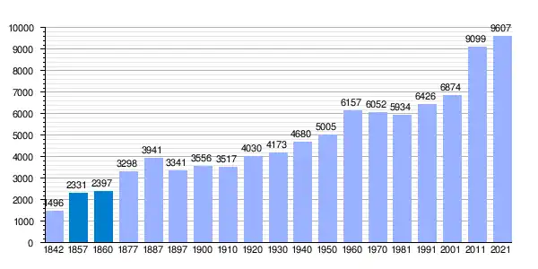 | Gráfica de evolución demográfica de Pizarra[2] entre 1842 y 2021 |