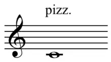 En un instrumento de cuerda frotada es un método de interpretación que consiste en pulsar la cuerda con los dedos, en lugar de utilizar el arco. Esto produce un resultado muy diferente a los movimientos de arco, los sonidos son cortos y percusivos en lugar de mantenerse.[1]