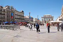 La plaza se convirtió en el lugar central de la ciudad cuando a mediados del siglo XIX se construyó la estación de ferrocarril principal (Gare de Montpellier Saint-Roch) unos 200 metros al sur de la plaza. En aquella época, también salía de la plaza un tren más pequeño que iba hacia la playa cercana de Palavas-les-Flots.