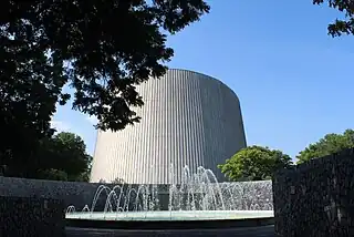 El edificio cuenta con 40 metros de diámetro y su altura es de 34 metros, su estructura es de concreto armado y cuenta con una inclinación de 63 grados en horizontal, lo cual asemeja un telescopio viendo hacia el horizonte. Fue diseñado por los arquitectos Fernando Garza Treviño, Samuel Weiffberg y Efraín Alemán Cuello, y calculado por el ingeniero civil Francisco Fortunato Garza Mercado. Este cilindro, inclinado de arquitectura singular, es único en su tipo.