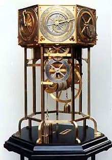 En 1348, Giovanni Dondi construyó el primer reloj conocido impulsado por un mecanismo que muestra la posición sobre la eclíptica de la Luna, el Sol, Mercurio, Venus, Marte, Júpiter y Saturno de acuerdo con la complicada teoría planetaria Ptolemaica.[2][3] El reloj original está perdido, pero Dondi dejó una completa descripción de los trenes de engranajes astronómicos de su reloj que ha permitido construir una reproducción.