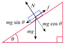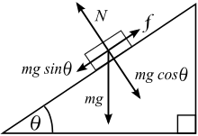 Una carga que descansa sobre un plano inclinado, cuando se considera como un cuerpo libre tiene tres fuerzas actuando sobre ella:[9][40][41]