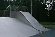 Otros planos inclinados se construyen en estructuras permanentes. Las carreteras para vehículos y los ferrocarriles tienen planos inclinados en forma de pendientes graduales, rampas y pedraplenes para permitir que los vehículos superen obstáculos verticales como colinas sin perder tracción en la superficie de la carretera.[4] De manera similar, los senderos para peatones y las aceras disponen de rampas suaves para limitar su pendiente, con el fin de garantizar que los peatones puedan mantener las condiciones de tracción necesarias.[2][5] Los planos inclinados también se utilizan como entretenimiento para que las personas se deslicen hacia abajo de forma controlada, en toboganes, rampas acuáticas, esquí alpino y pistas de patinaje.