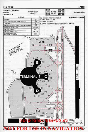 Carta de aparcamiento de aeronaves en el aeropuerto internacional Ben Gurion (Terminal 3)