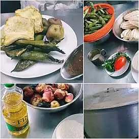Los ingredientes del plato paceño son carne de res frito, queso frito, choclo, papa hervida con cáscara y habas cocidas con cáscara. Se suele acompañar con llajua.[1]