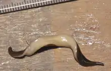 ![]() Platydemus manokwari, la cabeza se encuentra a la derecha. | ||
