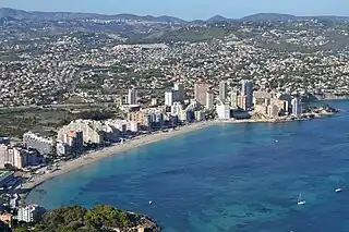 Esta playa limita al norte con la playa de la Calalga y al sur con el Peñón de Ifach y tiene una longitud de 950 m, con una amplitud de 40 m.