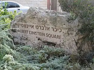 La plaza Albert Einstein[1] es un espacio público en Entrada a la Academia Israelí de Ciencias y Humanidades en Jerusalén,[2] Israel,[3] llamada así por el físico alemán Albert Einstein. La plaza está al sudoeste de la ciudad vieja y es donde se ubican algunas organizaciones e instituciones de importancia nacional de educación superior .