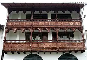 En 1995, luego de la visita a Chacas que hizo el entonces presidente Alberto Fujimori, para apreciar el trabajo del padre Ugo de Censi con los jóvenes del taller Don Bosco, ofreció un lote de madera cedro de la selva peruana que se utilizó en la elaboración de los actuales balcones del perímetro de la plaza. El convenio se realizó entre la municipalidad y los artesanos del taller Don Bosco quienes tomaron como referencia los balcones coloniales de Lima y del Cusco.