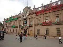 El Palacio Municipal es un edificio ecléctico del siglo XIX. Alrededor de 1593 Juan de Oñate y su sucesor Juan López de Riego construyeron un edificio sencillo para las autoridades. En el mismo sitio llegaron a existir las casas reales, una cárcel, un parián y el palacio episcopal para el obispo Ignacio Montes de Oca y Obregón. En 1915 fue devuelto al ayuntamiento.[8] Frente al palacio municipal se encuentra la escultura El Señor de las Palomas.