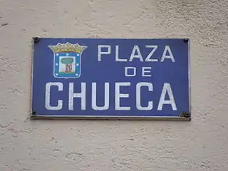 La plaza de Chueca, antes llamada plaza de San Gregorio Magno,[1] es un pequeño espacio peatonal de la ciudad española de Madrid, en el barrio de Justicia, distrito Centro, enmarcado por la calle de Gravina, al este, y la de Augusto Figueroa al oeste, a un costado del inicio de la Gran Vía de Madrid. Dedicada desde 1943 al compositor madrileño Federico Chueca,[lower-alpha 1] da nombre a todo el barrio. En el inicio del siglo XXI aparecía en las guías turísticas como corazón de la comunidad gay en la capital de España,[2] aunque el dato aún no figuraba en la obra de algunos cronistas, estudios callejeros y enciclopedias sobre Madrid.[3][4]