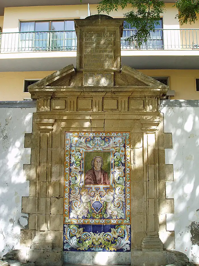 Conocida antaño como plaza del Carbón, se caracterizaba por su intensa actividad, debida a la cercanía de los muelles pesquero y comercial de la ciudad. Por ella transitaba un alto número de personas y también de mercancías. Esto no se da en la actualidad, pero aún destacan edificios barrocos del siglo XVIII, como el palacio de Pablo Vizarrón. Su actual fisonomía obedece a una reforma efectuada en 1938, cuando se dedicó la plaza a Cristóbal Colón, por sus especiales relaciones con la Casa de Medinaceli y El Puerto de Santa María. Por este motivo se erigió en el centro de la plaza una cruz monumental conmemorativa hoy desaparecida, si bien aún se conservan los azulejos dedicados al insigne marino.