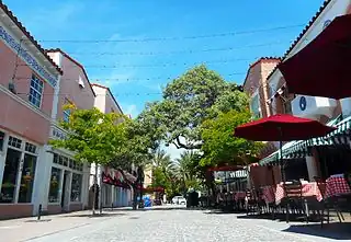 Española Way en 2011 antes de su remodelación a plaza peatonal en el 2017.