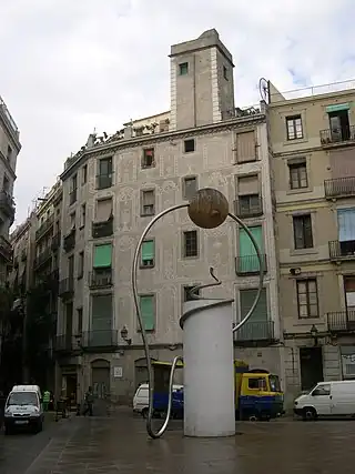 ![]() La plaza, con el monumento de Leandre Cristòfol | ||