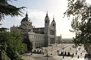 ![]() Vista de la plaza de la armería abierta al peatón y la catedral de la Almudena | ||
