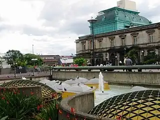 ![]() Vista del costado norte del Teatro Nacional desde la fuente-lucernario | ||