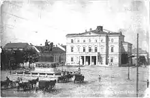 ![]() Vista general de la plaza, con el Museo Nacional, el Teatro Nacional y la estatua ecuestre del príncipe Miguel. | ||