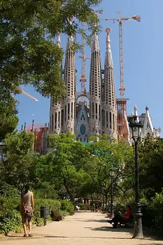 ![]() Fachada de la Pasión de la Sagrada Familia vista desde la plaza | ||