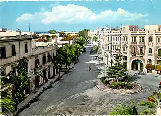 Los edificios de la Corporación Nacional de Petróleo y el banco Wahda tienen vistas a la plaza, con varios otros edificios de histórica distinción arquitectónica. Muy cerca se encuentran tres edificios administrativos del gobierno.