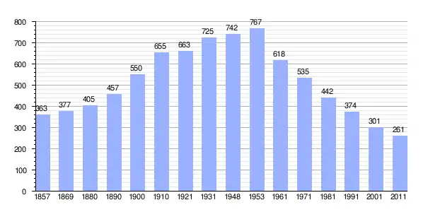 | Gráfica de población de Pleš 1857-2011 |