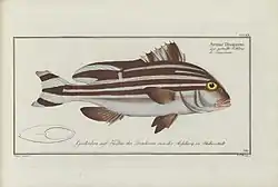 - Esta obra contiene una traducción derivada de «Plectorhinchus diagrammus» de Wikipedia en catalán, publicada por sus editores bajo la Licencia de documentación libre de GNU y la Licencia Creative Commons Atribución-CompartirIgual 4.0 Internacional.