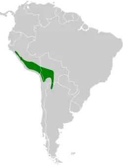 Es una especie gregaria que vive en las altitudes de la Cordillera de los Andes en una zona paralela a la costa del Pacífico de América del Sur. Realiza migraciones altitudinales desde los Andes hacia la costa.