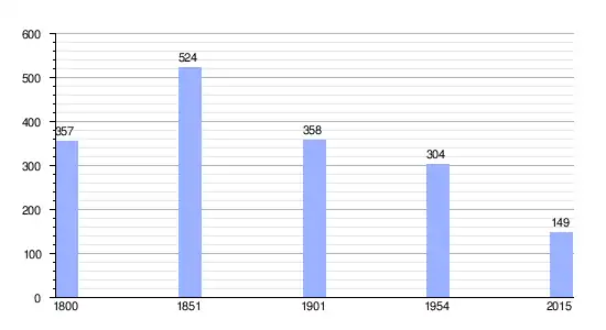 Los datos demográficos contemplados en este gráfico de la comuna de Pleines-Œuvres[4] se han cogido de la página francesa EHESS/Cassini, y los demás datos de la página del INSEE.[5]