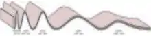 - Disarmónicos: Pliegues en capas adyacentes con diferentes longitudes de onda y formas,[17] normalmente debido al diferente comportamiento mecánico de cada capa al mismo campo de esfuerzos.