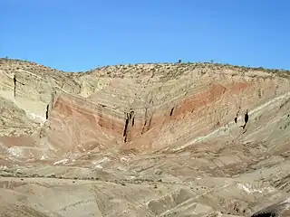 - Cuenca estructural: sinclinal no lineal, los estratos buzan hacia el centro en todas direcciones, con los estratos más recientes en el centro.