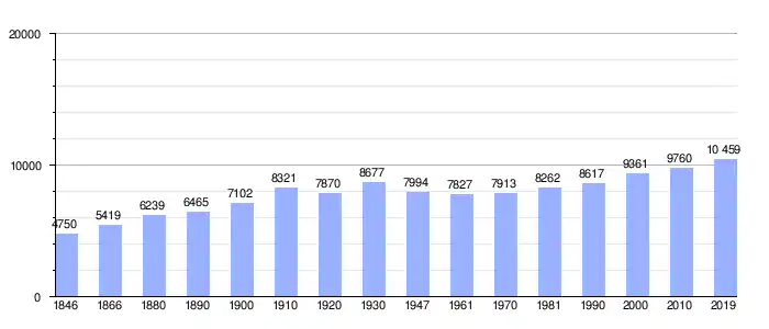 | Gráfica de evolución demográfica de Plombières entre 1846 y 2019 |